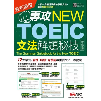 書名:專攻NEW TOEIC 文法解題秘技〈增修版〉:【書 + 1片MP3光碟】 語言:繁體中文 ISBN:9789864411948 頁數:400 出版社:希伯崙 作者:LiveABC編輯群 出版日期:2017/12/15 類別:語言學習 |